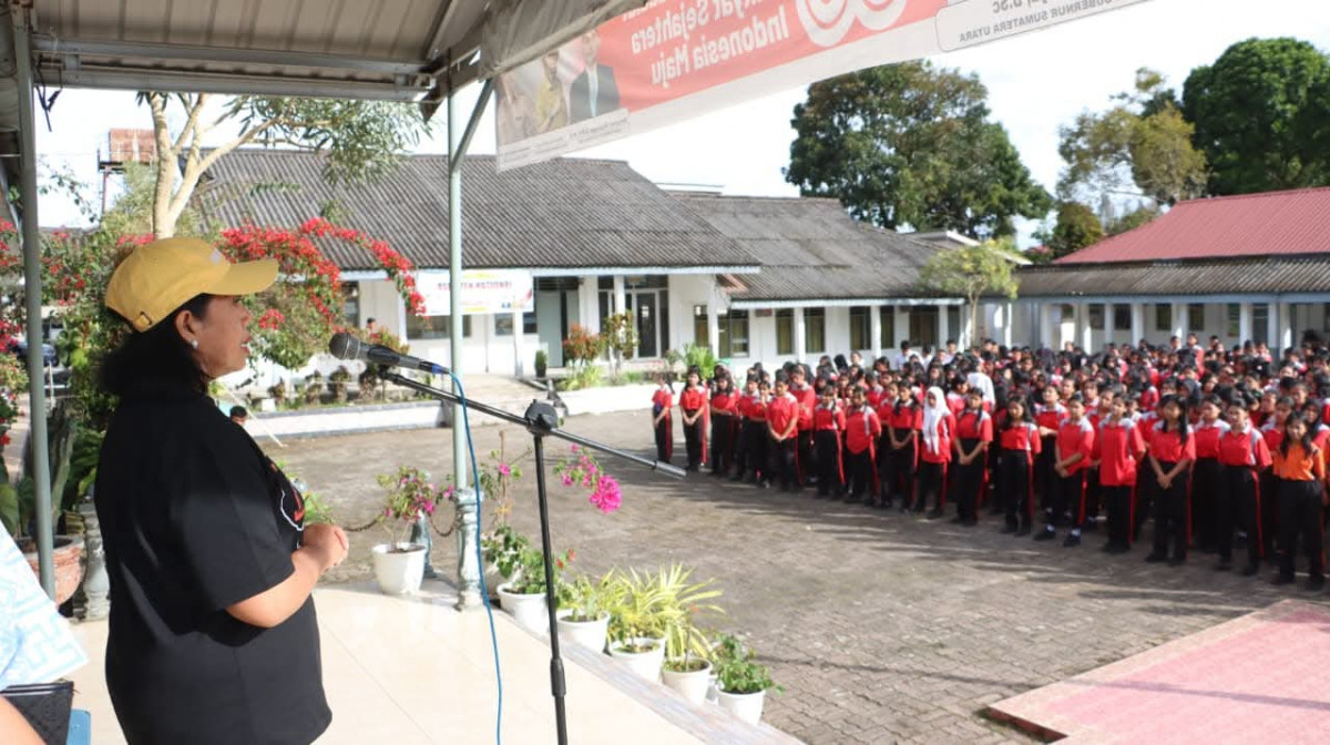 Sidikalang - Ketua Tim Penggerak PKK Dairi Rita Puspita Vickner Sinaga menghadiri aksi bergizi di sekolah SMK Negeri 1 Sidikalang yang diadakan oleh Dinas Kesehatan pada Kamis (16/10/2025). Dalam kegiatan aksi bergizi, diadakan berbagai kegiatan diantaranya senam sehat bersama dan pembagian tablet penambah darah kepada pelajar remaja putri.